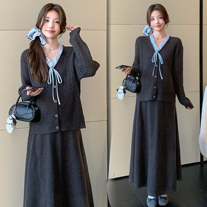 2025秋季新款气质绑带撞色高级感针织两件套全孕期可穿孕妇套装女