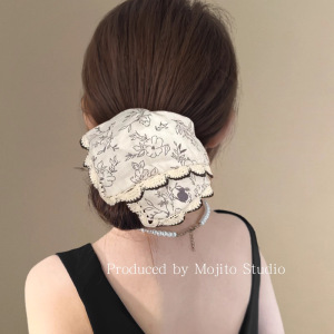 韩版法式碎花布艺方巾女2025新款慵懒小香风扎头发橡皮筋头饰发饰