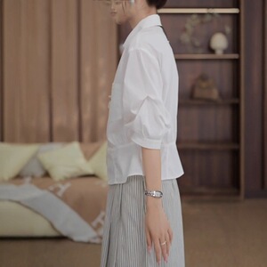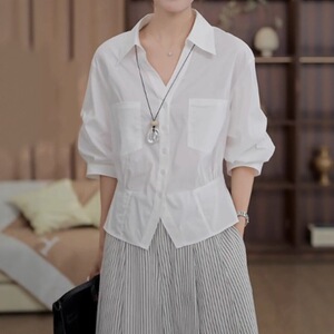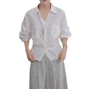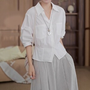 欧货时尚女装白色POLO领大码正肩衬衫女夏季小个子显瘦通勤上衣