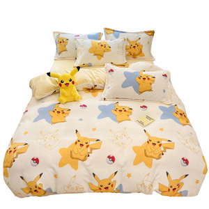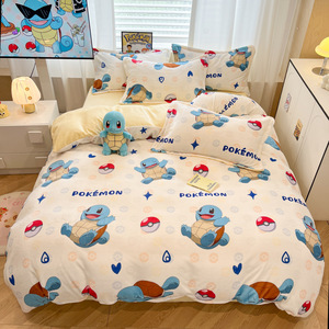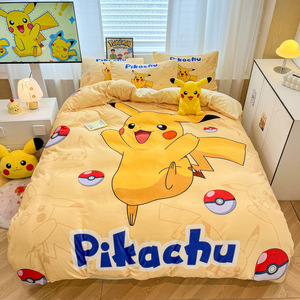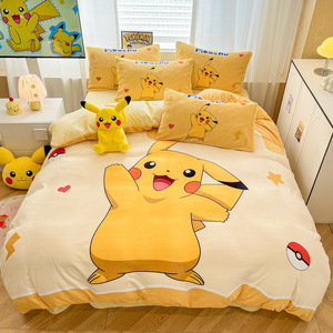 正版宝可梦牛奶绒四件套冬季加厚保暖卡通皮卡丘学生宿舍三4件套