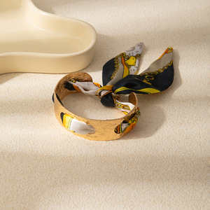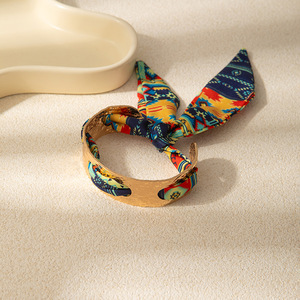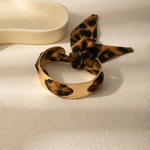 复古个性豹纹丝巾手镯彩色沙滩风飘带系绳凹凸面手环女设计感手饰