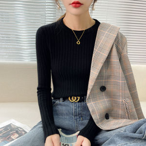 秋冬新款气质圆领针织衫女修身套头打底衫长袖上衣内搭显瘦毛衣女