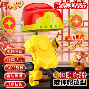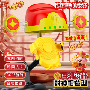 财神小头盔车载导航手机支架 外卖骑手骑行电摩手机导航支架跨境