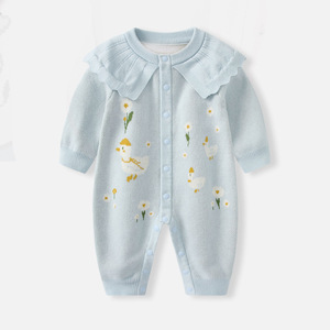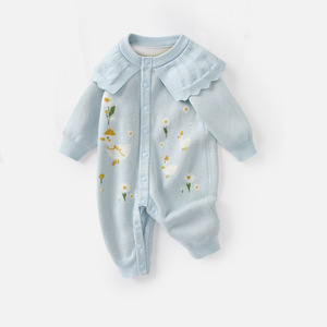 婴儿连体衣秋装衣服2025新款女宝宝满月百天针织哈衣春秋外出爬服
