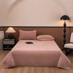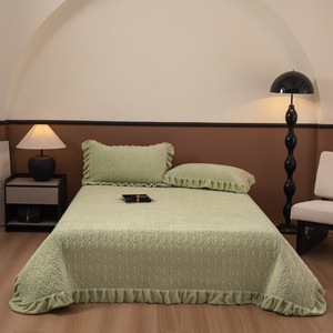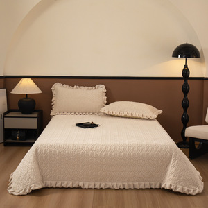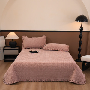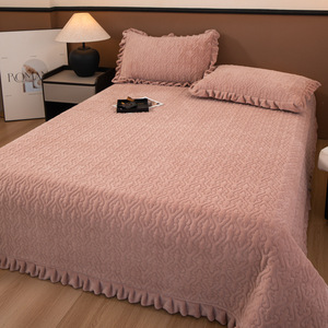 A类牛奶绒夹棉床盖简约纯色花边加厚防滑床单保暖床裙榻榻米炕垫