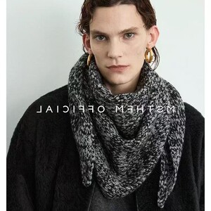 2025新款羊毛花色混纺大披肩秋冬针织三角围巾披肩造型潮流保暖