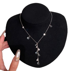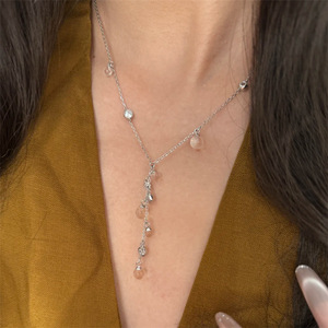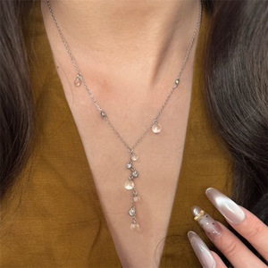 清透葡萄串白水晶项链简约精致锁骨链高级感小众设计颈链水滴流苏