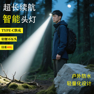 户外头灯夜钓超强续航led灯智能感应头灯登山防水头戴式强光头灯