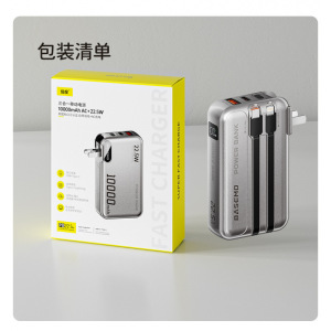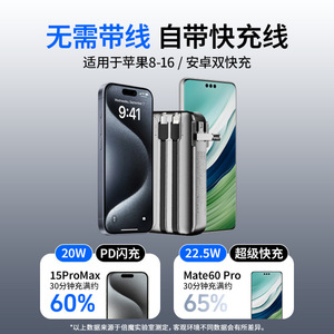 万毫安三合一充电宝自带线墙插移动电源.适用苹果华为多设备