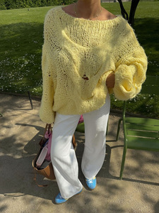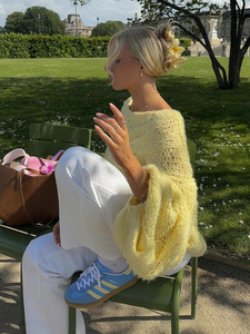欧美新款慵懒风清新针织衫纯色落肩袖套头衫软糯亲肤秋冬毛衣女