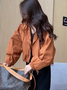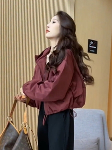 连帽冲锋衣女短款2025春秋新款小个子休闲感夹克外套上衣