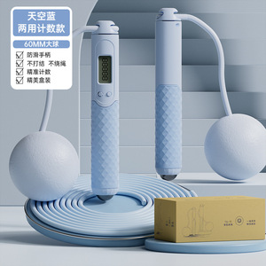 蓝色-两用款盒装【精准计数/磁珠按摩】 2.8米pvc绳可调节+6mm无绳大球