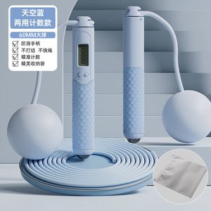 蓝色-两用款袋装【精准计数/磁珠按摩】 2.8米pvc绳可调节+6mm无绳大球