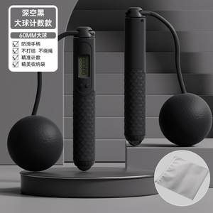 黑色-两用款袋装【精准计数/磁珠按摩】 2.8米pvc绳可调节+6mm无绳大球