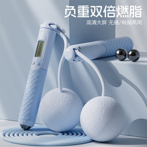 无绳跳绳健身减肥用成人女生燃脂塑形计数款负重大球磁珠按摩智能