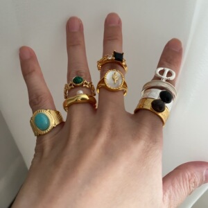 时尚叠戴金色高级感戒指女百搭小众设计感冷淡指环情侣单身食指戒