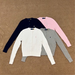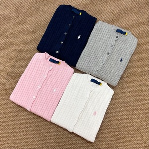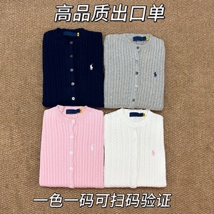 RL拉夫马标刺绣麻花针织衫女开衫圆领短款女装上衣显瘦针织外套