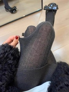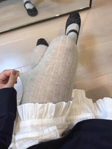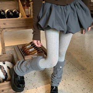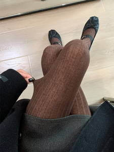 灰色打底裤春秋款外穿坑条miu系长筒连脚袜夏季薄款高腰连裤袜女