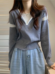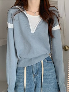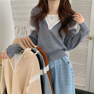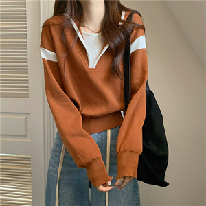 假两件南瓜橘色长袖女上衣2025春秋打底内搭欧货卫衣T恤配工装裤