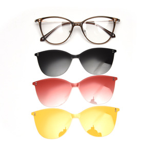 72515新款猫形磁吸偏光三色套镜TR90半钛近视眼镜框女潮平光镜架