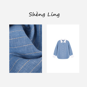 色织亚麻衬衫春秋衬衣长袖洋气休闲条纹SL5126X