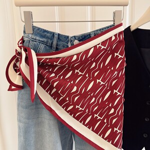 红色高级感叠穿屁帘裙帘女半身裙牛仔外搭丝巾围巾包头多功能围巾