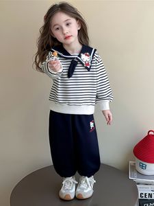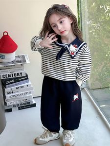 女童秋款卫衣套装儿童可爱海军领休闲运动套装宝宝卡通条纹蝴蝶结