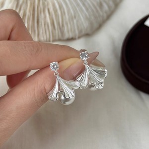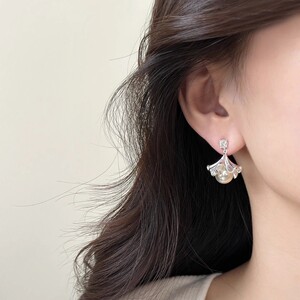 2025新款小众扇形银杏叶流苏珍珠耳环女夏天耳坠爆款轻奢高级感