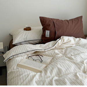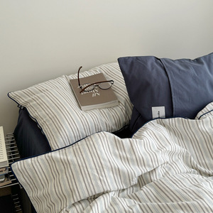北欧风纯棉色织水洗棉四件套ins混搭纯色全棉床单被套宿舍三件套