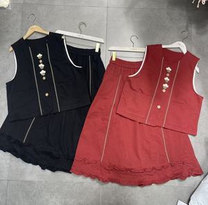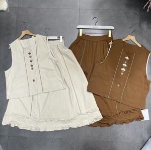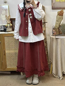 韩系高级感复古松弛感小花叠穿背心马甲+木耳边纯色半身裙两件套