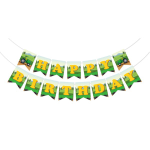 跨境农场拖拉机生日派对套装农场拉旗蛋糕插蜂窝球螺旋场地布置