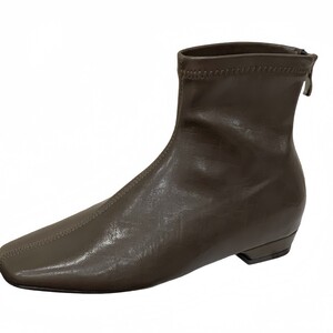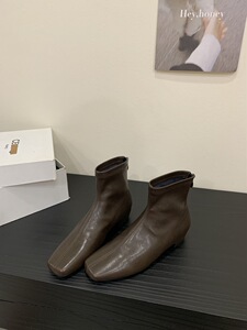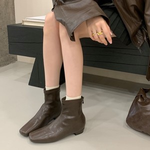 内增高复古棕色马丁靴女鞋2025新款方头瘦瘦法式小短靴春秋单靴子