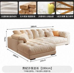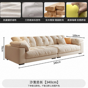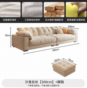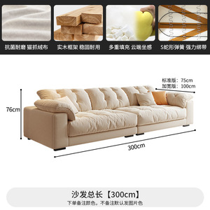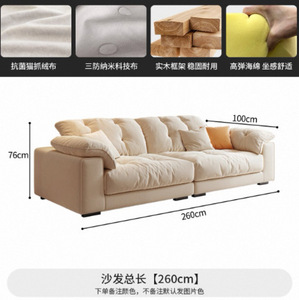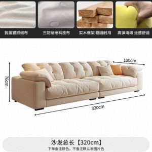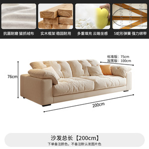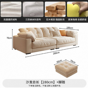 奶油风布艺沙发小户型客厅家用简约轻奢科技布艺沙发直排云朵沙发