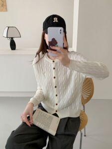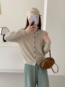 秋冬新款针织衫外套女韩系复古刺绣圆领麻花毛衣长袖上衣开衫外搭