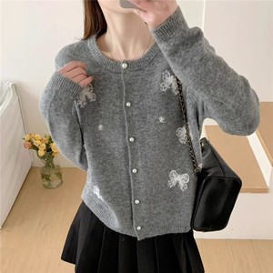 韩系小香风蝴蝶结软糯针织开衫女秋冬新款小个子甜美百搭毛衣外套