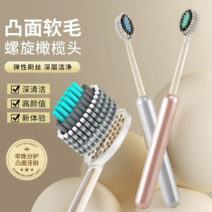 【2支装轻奢山型牙刷】橄榄头螺旋弹力软毛高档护龈成人家用