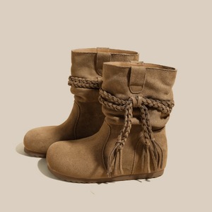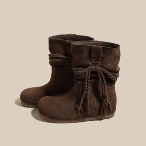若纪5cm内增高堆堆靴女款2025秋新款小个子中筒复古流苏骑士靴