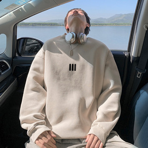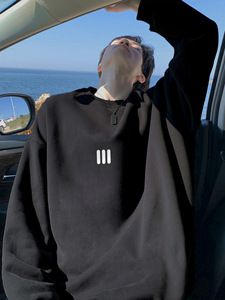 美式简约黑色圆领卫衣男款春秋冬季潮牌宽松休闲大码男生无帽上衣