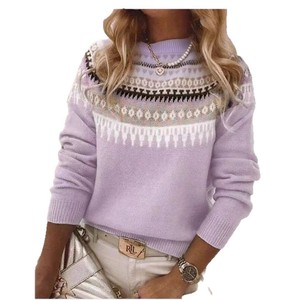wish热卖亚马逊欧美新款毛衣女圆领拼色宽松时尚套头针织衫