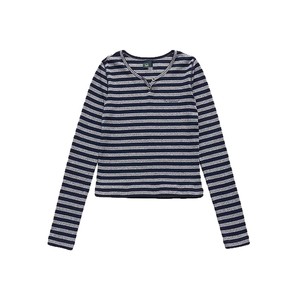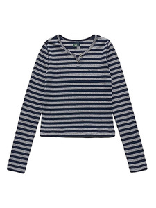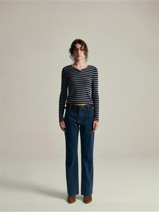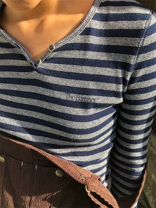 现韩国设计师th* barnnet八奶家条纹打底衫韩系桃心领修身长袖T恤