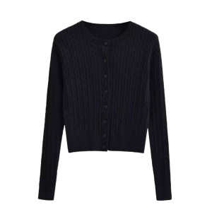 麻花圆领毛衣针织开衫外套女秋冬设计感宽松长袖宽松短款外搭