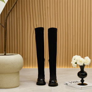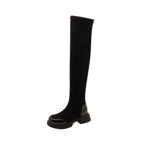2025秋冬新品加绒弹力靴女韩版侧拉链厚底休闲鞋女纯色过膝靴女