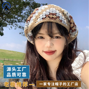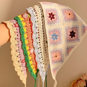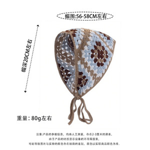 日系手工勾花美拉德风头巾时尚高级感镂空三角巾针织田园风手钩帽