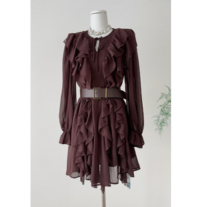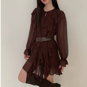 2025秋季新款法式重工荷叶边不规则长袖别致连衣裙女美拉德短裙秋