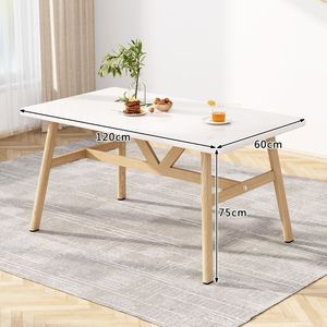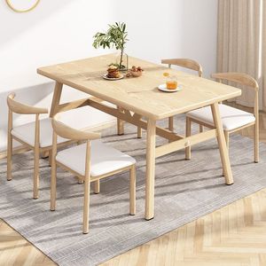 11_原木色120*60cm桌+白色皮坐垫四椅