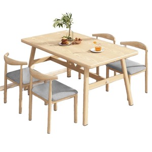 19_原木色120*60cm桌+浅灰布坐垫四椅