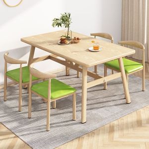 13_原木色120*60cm桌+黄色皮坐垫四椅