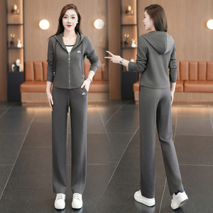高棉连帽卫衣卫裤时尚休闲运动套装女2025年秋季新款直筒裤两件套