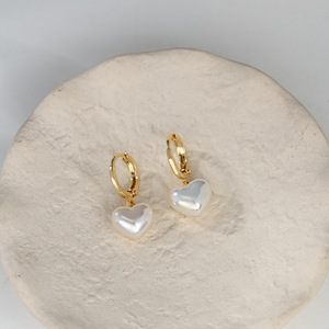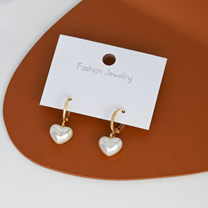 韩版时尚简约风爱心人鱼姬珍珠耳扣日常约会佩戴款桃心耳饰品批发