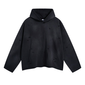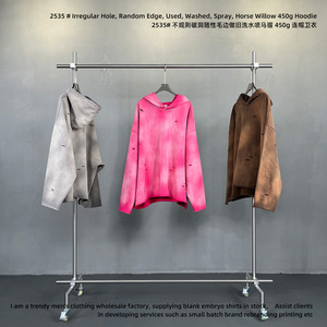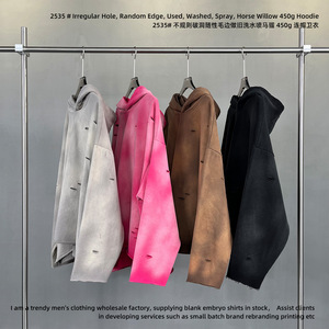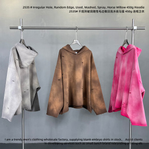 2025秋冬潮牌欧美洗水喷染做旧ins破洞男女卫衣渐变连帽宽松卫衣